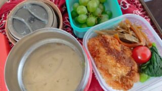 日々の記録 あるもの詰めたお弁当で 今日はバイトじゃお弁当。ストックのカップ麺でもと思うも、あるもの詰めたら何とかなった!今日のお弁当豆乳お味噌汁(白菜しめじベーコン)、鶏むねカツ(自家製冷... 2025.10.09 日々の記録
