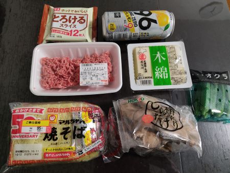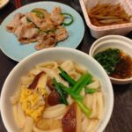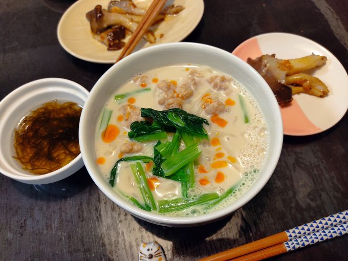 豆乳たんたんうどん、平茸ガーリック醤油焼き、もずく酢