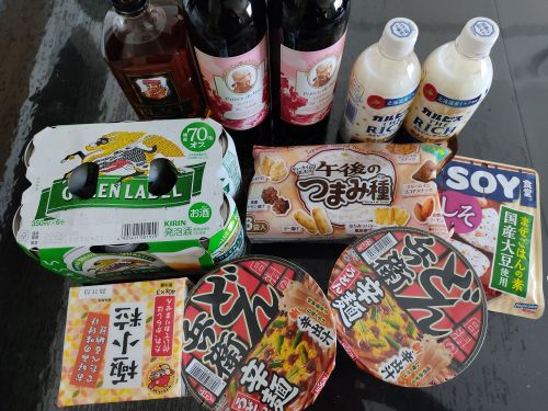 カルピスとおせんべいはオカン用、お酒は自分用w