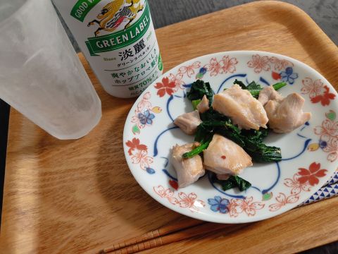 鶏もも塩レモン焼き+小松菜、淡麗グリーンx1