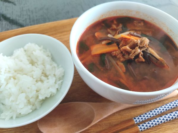 ユッケジャンスープ、ごはん x2倍おかわり!