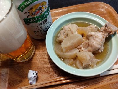 実家からまた大根をたくさん貰ってきたので、昨日鶏手羽元と圧力鍋で。