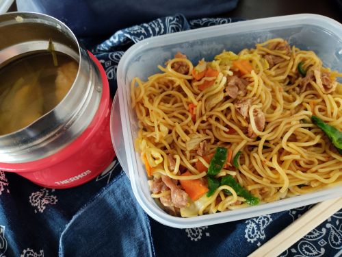 やきそばは昨晩作って冷めたら冷蔵庫にイン。