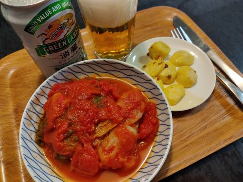 ロールキャベツ2個、アンチョビポテト、淡麗グリーン