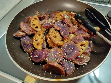 作り置きにさつま芋と蓮根の甘酢炒めも。