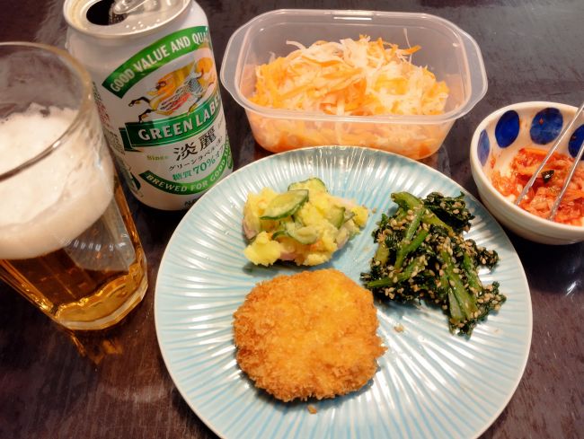 先に両親にごはんを食べてもらってから、オレお疲れ晩酌開始の図。
