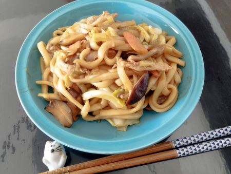 朝はいつも通り、お昼は焼うどん。