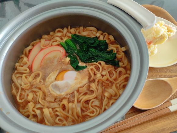 寿がきや 味噌煮込みうどん、ポテトサラダ