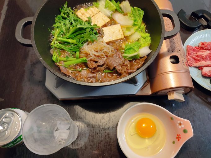 すき焼き(牛肉、白菜、春菊、焼豆腐、白滝)
