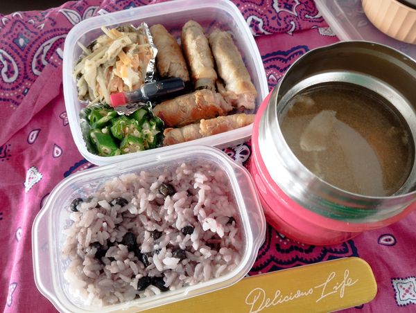 今日はバイトじゃ、昨晩仕込み弁で 2026.03.05 今日はバイトじゃお弁当。 豚汁もおかずも昨晩作って詰めておいたから楽ちんv スポンサーリンク 目次 今日のごはん朝ごはんお昼はお弁当晩酌開始の図今日の食出費 今日のごはん 朝ごはん 黒豆ごはん、豚汁、刻みオクラ入り納豆、+しらすもイン ごはんも小分け冷凍をチンで。 お昼はお弁当 黒豆ごはん、豚汁、豚肉紫蘇巻、オクラおかか和え、ごぼう鶏むね胡麻マヨサラダ そしてバイトを定時で上がり 晩酌開始の図 麻婆豆腐(クックドゥで、半分)、サラダ、淡麗グリーンx1 今日の食出費 無し 3月(1~31日)食費5,738円 ~このあと、赤ワインをちびちび(今)~