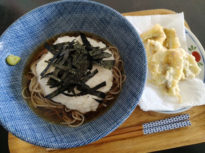 とろろ蕎麦(冷)、チカ天ぷら