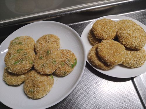 揚げないコロッケ2種類(枝豆入りと、カレー粉入り)